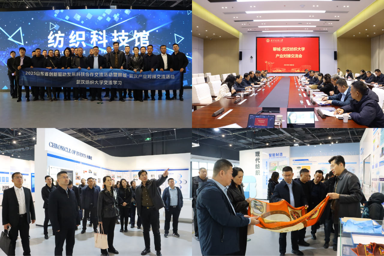 在武汉纺织大学,校党委常委、副校长冯军接待参访团一行,并详细介绍了学校学科建设、成果转化及与聊城企业的合作基础。高新区管委会副主任、市产研院院长田存伟围绕活动背景,介绍了聊城产业基础、纺织服装产业现状及产研院、大学科技园运营模式,强调平台“技术经理人”职能,希望深化双方合作,产研院将全力做好服务保障。市科技局副局长魏丽明确此次交流是此前合作协议的落地举措,并介绍了聊城纺织产业规模与升级需求。市商务局科长张杰介绍了聊城产业相关情况。东昌府区相关负责人及企业代表围绕产业链协同等问题交流发言,双方就新材料研发、工艺智能化改造达成多项共识。座谈会后,参访团在该校技术研究院郭庆峰老师的引领讲解下,参观了纺织科技馆,系统了解纺织历史沿革、工艺迭代、功能性产品研发及生物医疗领域应用探索,直观感受其科研积淀与创新活力。