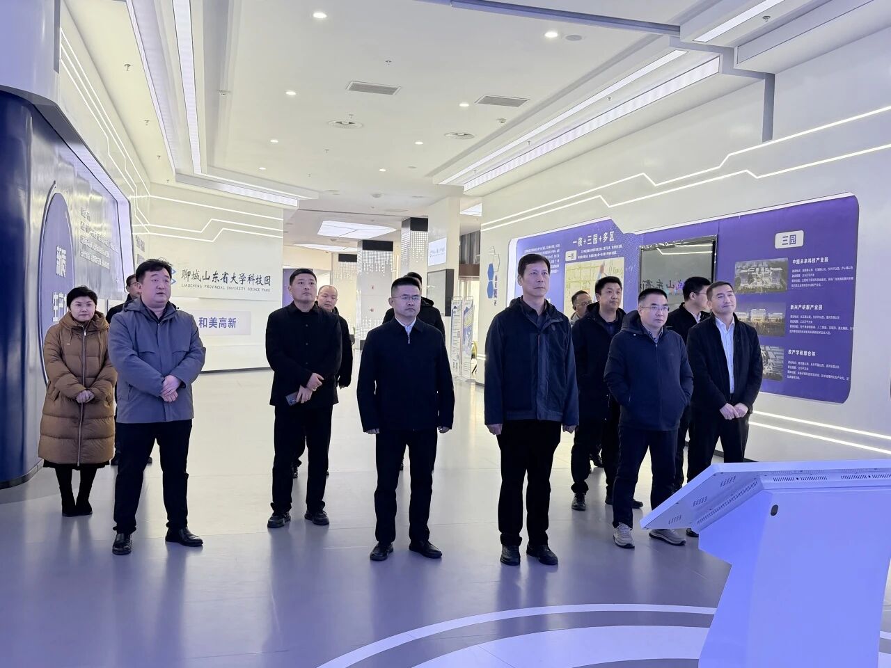 考察团一行实地参观了大学科技园展厅,深入了解了大学科技园、聊城产研院的产业布局、发展历程及科技成果转化、企业孵化、人才引育等成效。