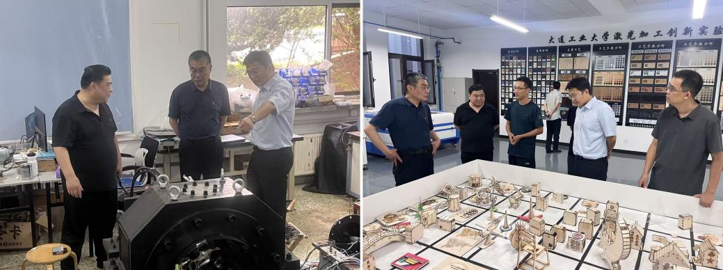 在大连工业大学,机械工程与自动化学院院长庞桂兵接待聊城产研院一行,并重点介绍大连工大自主开发的五轴联动龙门加工中心、高速高精直驱转台等整机与功能部件技术成果。郝英涛介绍了产研院当前运营模式,针对大连工大自主研发的技术成果,建议可面向聊城轴承保持架、精密齿轮、新能源汽车电机壳体三大典型件开展工艺验证与批量试制研究,助力聊城高端装备产业高质量发展。凯美瑞轴承科技公司董事长燕敬祥针对企业面临的低温重载轴承技术需求与专家进行深入交流并达成合作意向。期间,郝英涛一行与创新创业学院院长温保岗进行深入交流,详细了解该学院在智能工厂,数字化车间等工程实训基地的建设情况;还与轻工与化学工程学院副院长马纪亮对接交流,详细了解制浆与造纸工程方向、光催化生产化学品和能源燃料方向的研发团队及科研成果,并参观工程训练中心,了解智能制造实训室、智能工厂模拟产线,以及学生实训工作开展情况;并与大连交通大学动车运用与维护工程学院院长费继友对接,双方在轻量化新材料、智能检测技术、智能制造等领域共建产学研合作基地、联合技术攻关等达成初步合作意向。